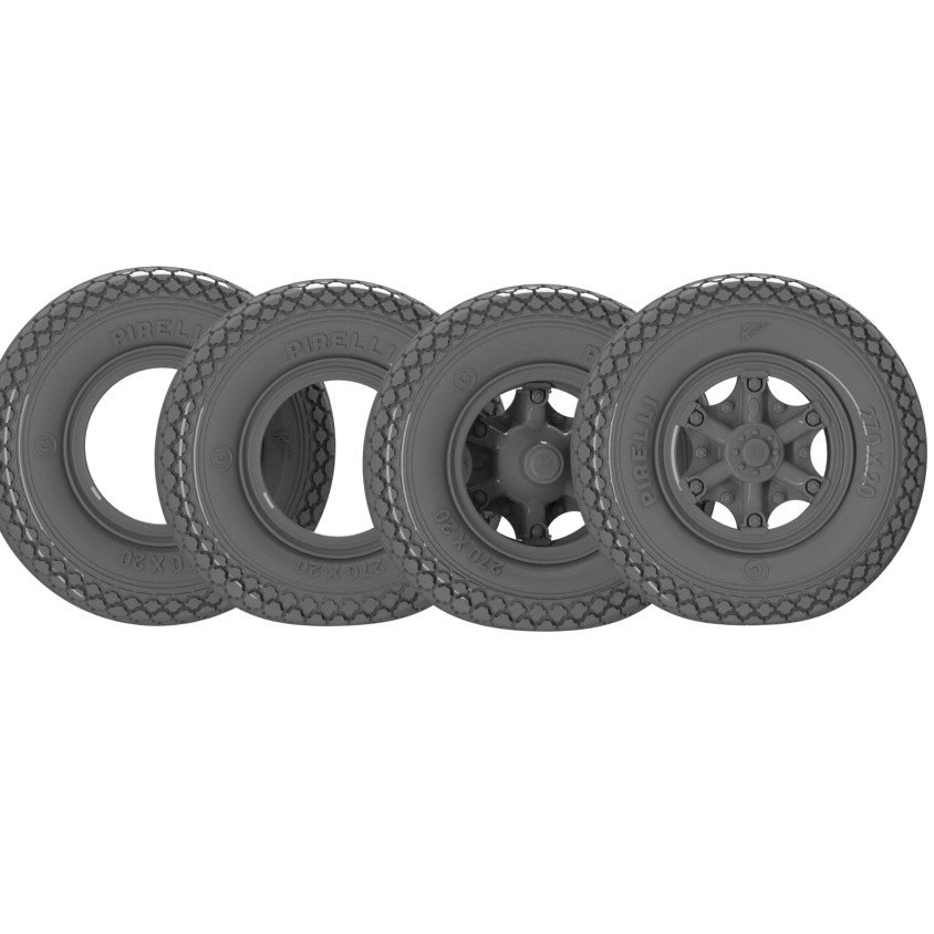Set completo di ruote (+ scorta) + anelli distanziatori per ruote posteriori